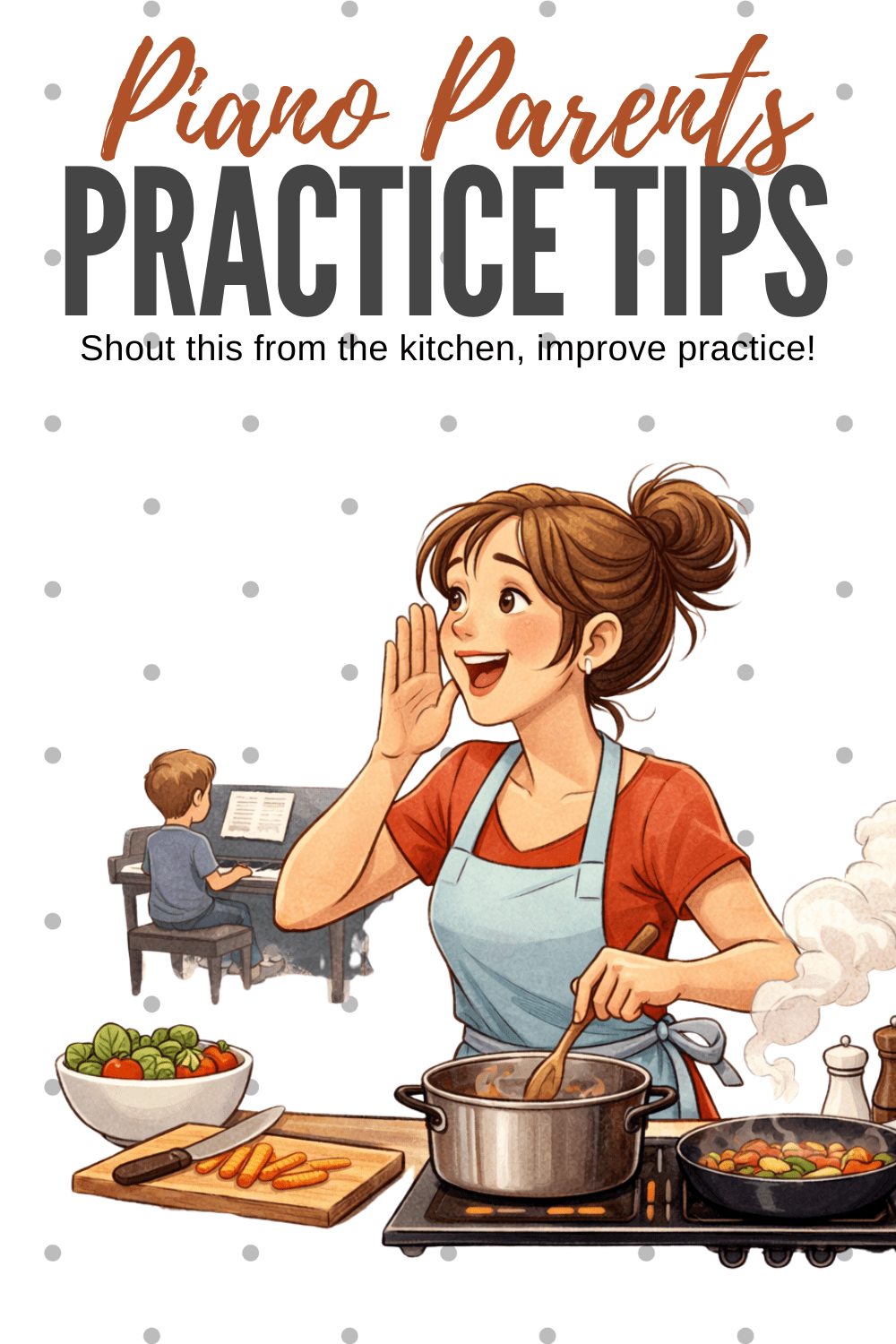 Hand out our “Shout It From the Kitchen” sheet and encourage parents to use it on those busy days when sitting beside the piano just isn’t possible. Tape it to the fridge, keep it simple, and let those small, consistent prompts do the heavy lifting—because they truly add up over time.