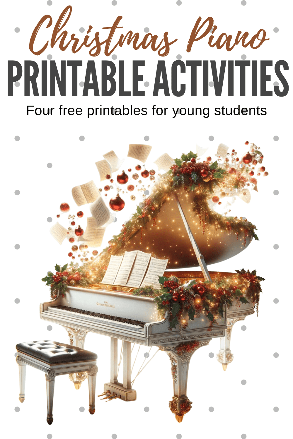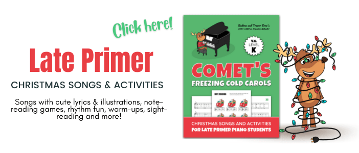 As piano teachers, we too can use the excitement of the holidays to our advantage and keep the momentum of the fall term rolling. To help you along the way, we have a couple of activities that we gave away last December that were a huge hit in our readers’ piano studios. If you missed them last year, then here’s your chance to grab them!