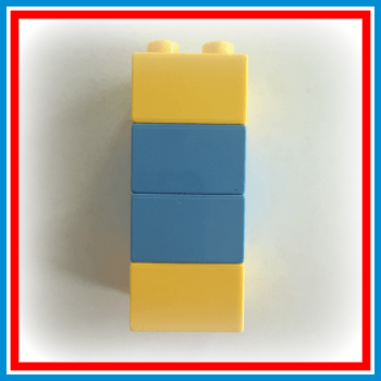 7. Give your students an assortment of blank blocks that are in two colors only. Play an interval (within the key of C) and have your students first name and then “build” the interval: one color represents the interval (the root and the given note), one color represents the “missed notes” within that interval. For example, a Perfect 4th would look like this: