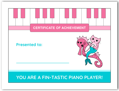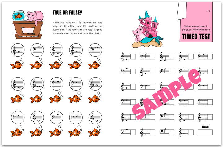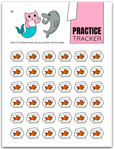 Kids practice more often when they take ownership of their learning. At the end of The Cat, the Mermaid, and the Soaking Wet Songbook, students will find a practice tracker page where they can keep track of their hard work in a kid-friendly way.