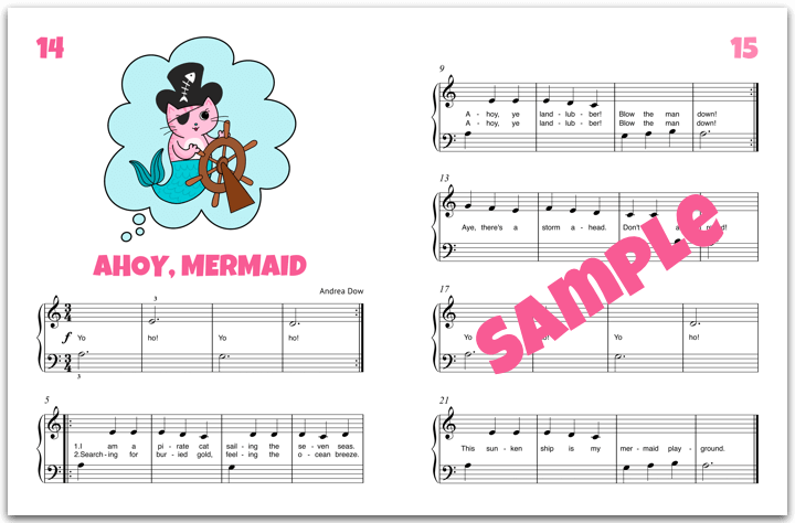 Like all of the resources in the Very Useful Piano Library, The Cat, the Mermaid, and the Soaking Wet Songbook contains music and so much more!