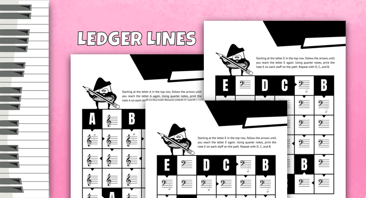 Today’s printable focuses on ledger line notes above and below the grand staff. To download the resource, visit Teach Piano Today’s Homework Pages (click the pink button below).