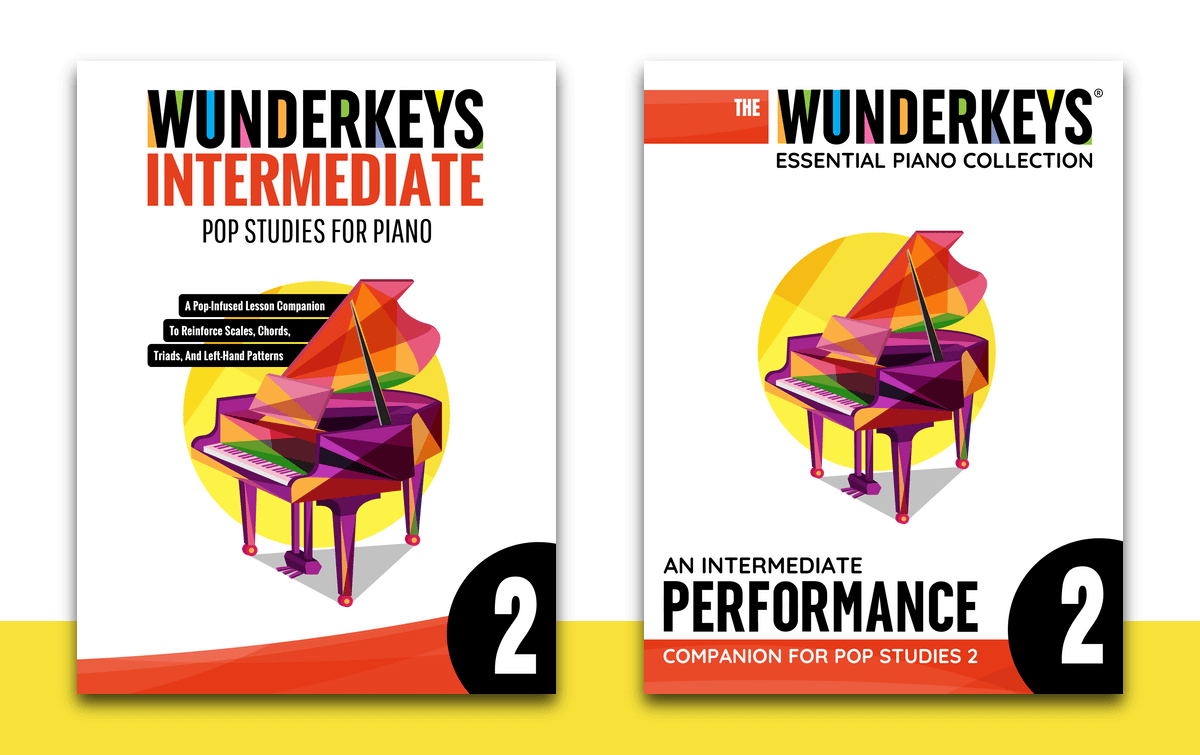 Each level in our teen program includes a WunderKeys Intermediate Pop Studies For Piano method book and an Intermediate Performance Companion book.