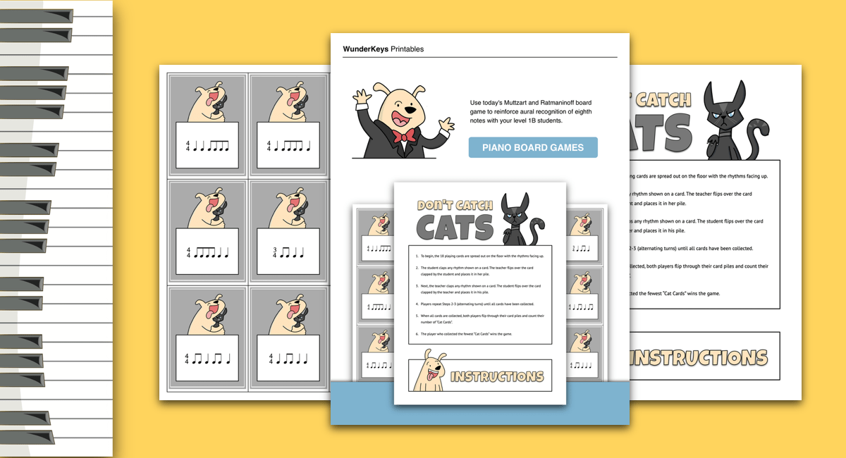 In today’s post, you can learn more about Muttzart and Ratmaninoff, In the Hole of the Backyard King and can download Don’t Catch Cats: An Eighth Note Ear Training Game.