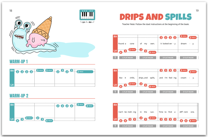 Glissando and the Slimy Songbook contains eight pieces for early primer piano students.