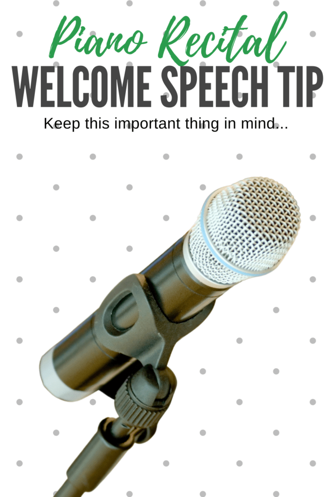 During a piano recital, you have a captive audience of parents who have to listen to your welcome speech.
