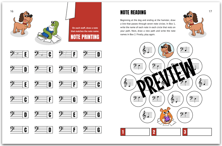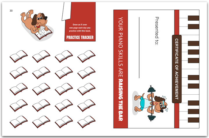 Kids practice more often when they take ownership of their learning. At the end of Who Slobbered On My Songbook? students will find a practice tracker page where they can keep track of their hard work in a kid-friendly way. They will also receive a Certificate of Achievement to reward their efforts. Simply cut out the certificate, fill in the relevant details, and present it to the deserving student.