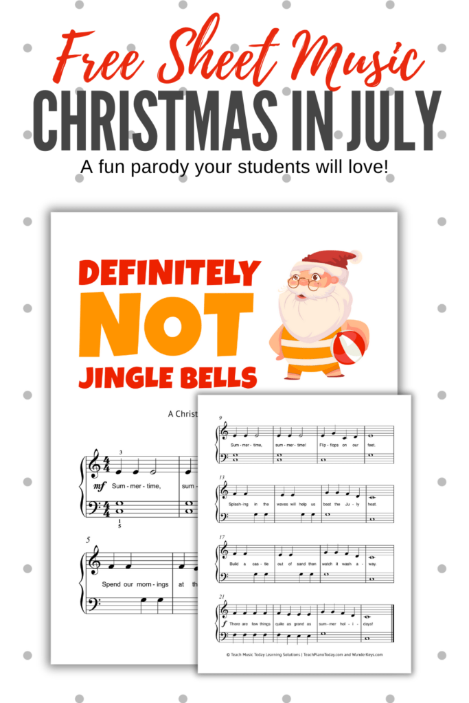 Definitely Not Jingle Bells is available at the bottom of today’s post. This July, not only have we reworked a Christmas classic, but you may also recognize the tune from our piano book, Comet’s Freezing Cold Carols.