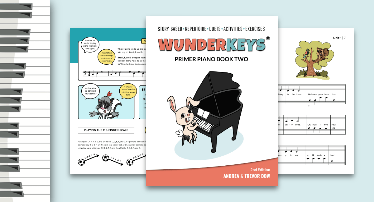 The 2nd Edition of WunderKeys Primer Piano Book Two is packed with everything you need to help your beginner students fall in love with the piano. And it is now available here!