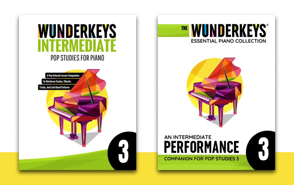 That’s why we created WunderKeys Intermediate Pop Studies for Piano—a pop-infused lesson companion that takes all of those “must-have” skills (scales, chords, triads, and left-hand patterns) and packages them in music your teens want to play.