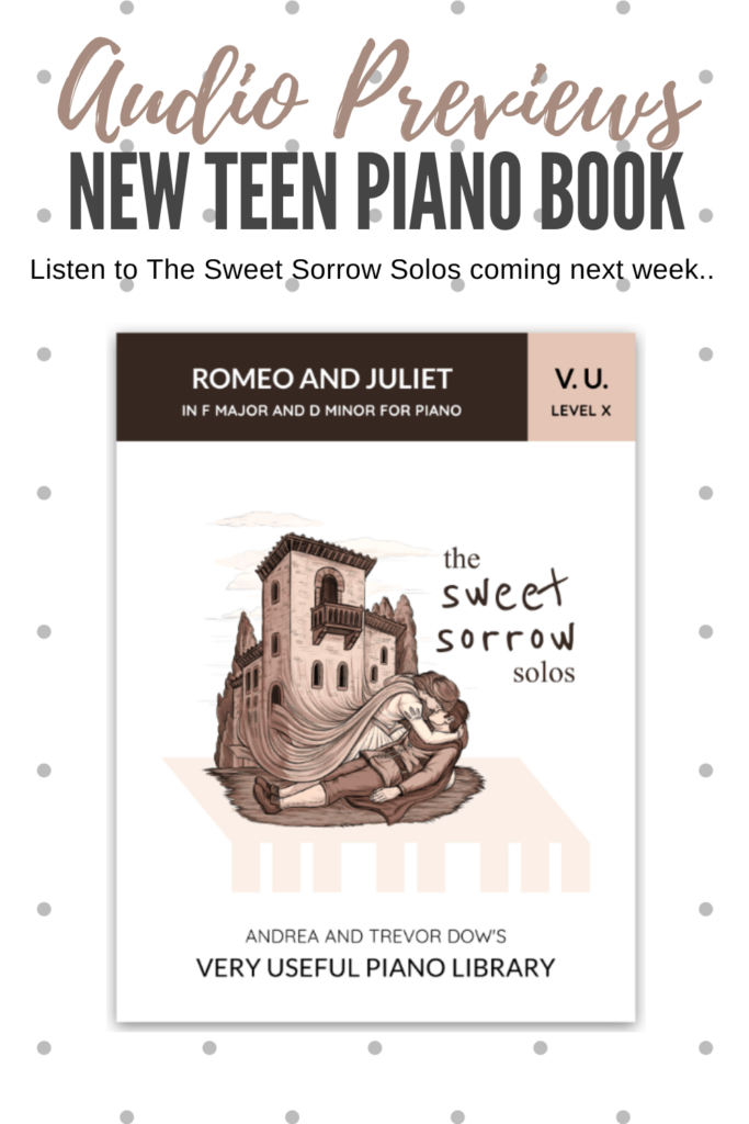 When it is released this coming Tuesday, The Sweet Sorrow Solos will become our seventh teen intermediate resource in Andrea and Trevor Dow’s Very Useful Teen Piano Library.